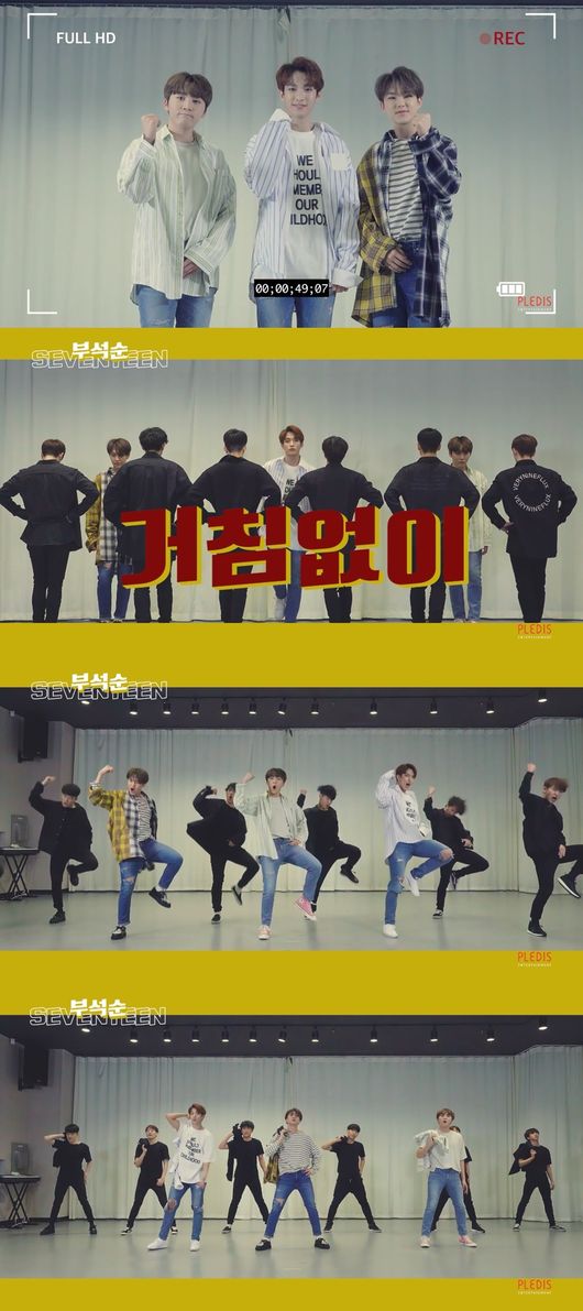 세븐틴의 유닛 부석순은 지난 25일 오후 공식 유튜브 채널을 통해 ‘거침없이’ 안무 영상을 전격 공개했다.