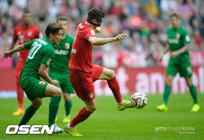 아우크스부르크에서의 첫 만남은 2014년 1월이었다. 당시 백업 자원이던 홍정호는 후반 43분 투입돼 도르트문트서 뛰던 레반도프스키와 독일 무대 첫 인사를 했다.