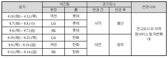 한편, 삼성의 제2구장인 포항야구장 경기는 추후 편성될 예정이다.