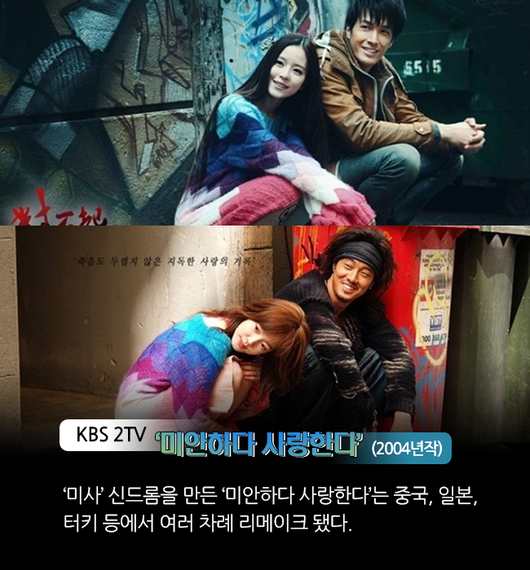 ‘미사’ 신드롬을 만든 ‘미안하다 사랑한다’는 중국, 일본, 터키 등에서 여러 차례 리메이크 됐다. 2017년 일본에서 리메이크된 일본판 ‘미안하다 사랑한다’는 기대와 달리 좋지 않은 성적을 거둬 아쉬움을 남겼다. 중국에서는 한국 방영 10년 만인 2014년에 영화로 제작돼 주목받았다.