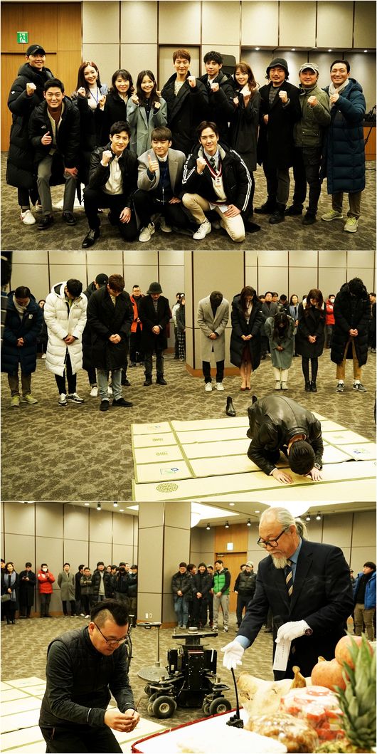 드라마를 든든히 이끌어 나갈 이들은 대박을 향한 마음을 담아 기도하며 제각기 작품을 향한 애정을 드러냈다. 대표로 절을 올린 김준면을 필두로 한 배우들이 나란히 서 무사 촬영을 기원했으며 민두식 감독은 “배우들과 스태프들 모두 안전하고 무사히 촬영을 마무리할 수 있도록 힘쓰겠다”며 현장의 사기를 북돋았다.