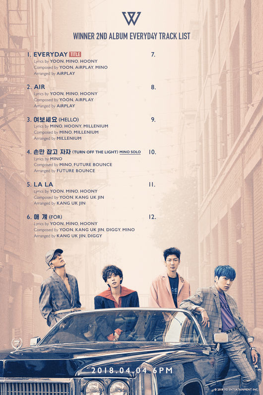 4월 4일 전격 컴백하는 위너의 정규 2집 트랙리스트가 베일을 벗었다.