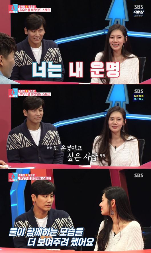 우효광에게 추자현이란 질문이 이어졌는데 우효광은 “너는 내 운명”이라고 답했고 추자현은 우효광을 “또 운명이고 싶은 사람”이라고 표현했다.