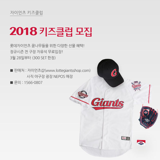 롯데 자이언츠는 오는 28일부터 3세에서 13세 어린이팬을 위한 2018시즌 키즈클럽 상품을 300세트 한정 선착순 판매한다.