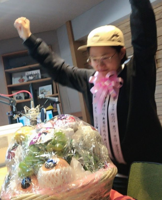 사진에는 팬들이 선물한 꽃다발을 보고 신나하는 김신영의 모습이 포착돼 있다. 꽃다발에는 “김신영 주간아 MC 축하, 롱런하자”라는 문구가 적혀 있어 눈길을 모은다. 꽃다발에 달린 리본을 목에 건 김신영은 어깨춤을 추며 기뻐하고 있다.