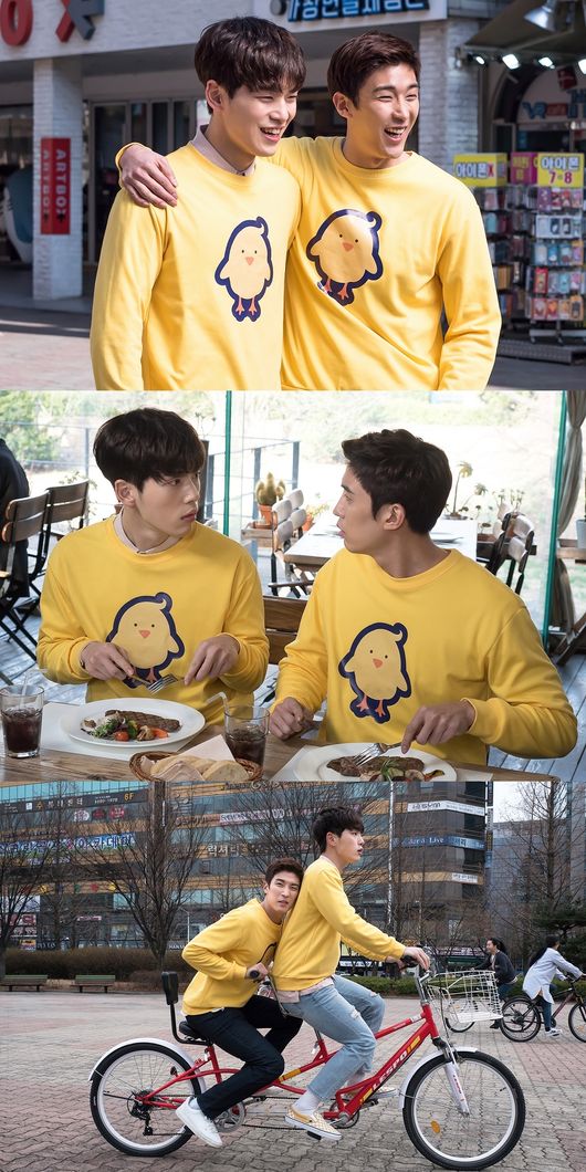 JTBC 월화드라마 ‘으라차차 와이키키’(연출 이창민, 극본 김기호 송지은 송미소, 이하 ‘와이키키’) 측은 27일 동구(김정현 분)와 현준(강경준 분)이 병아리 커플티를 입고 데이트에 나선 모습을 공개해 종잡을 수 없는 ‘와이키키’ 표 웃음에 기대감을 더하고 있다.