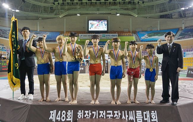 진천삼수초등학교(충청북도)는 27일 충청남도 보령시 보령종합체육관에서 열린 ‘제48회 회장기전국장사씨름대회’ 초등부 단체전 결승(개인 간 3전2선승제/팀 간 7전4선승제)에서 방어진초등학교(울산광역시)를 4-2로 제압했다.