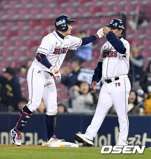 2회말 두산은 추가점을 냈다. 1사 후 류지혁의 볼넷 뒤 허경민과 최주환의 연속 2루타가 터졌다. 류지혁과 허경민이 홈을 밟으면서 두산은 3-0으로 달아났다.
