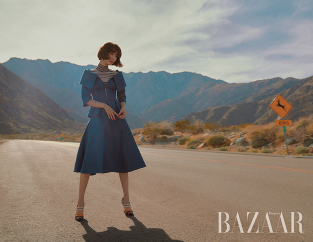 LA의 자연 경관을 배경으로 배우 고준희는 당당하고 카리스마 넘치는 포즈와 섬세한 눈빛, 풍부한 감성을 풀어 놓았다. 구조적인 디자인과 빈티지한 컬러감이 인상적인 룩을 소화한 그녀는 “타인의 시선보다는 스스로 옷을 즐겁게 입으려고 노력한다. 사실 옷을 입고 나서 거울을 많이 안 본다. 내가 나 자신을 가장 잘 아니까, 연출한다기보다는 자연스럽게 할 수 있는 것 같다”고 말했다.