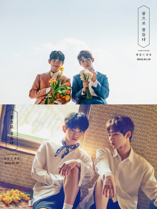‘#형섭X의웅’, ‘#두번째 프로젝트’, ‘#꿈으로 물들다’라는 해시태그와 함께 올라온 두 장의 사진은 감각적이고 빈티지한 아날로그 필름의 감성과 함께 소년에서 매혹적인 남자로 변신해가는 안형섭과 이의웅의 모습을 담고 있어 풋풋하면서도