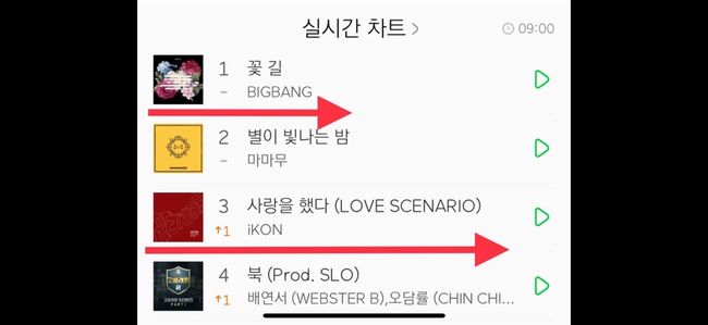 아이콘의 '사랑을 했다'도 이날 3위를 차지하며 여전히 차트 최상위권을 점령하고 있다. 아이콘은 지난 1월 발매한 ‘사랑을 했다’로 각종 음원차트 43일째 1위를 차지하며 보이그룹 10년 기록을 새로 썼다. 여기에 약 3개월간 '역대급 롱런'을 유지하고 있어 놀라움을 자아낸다.