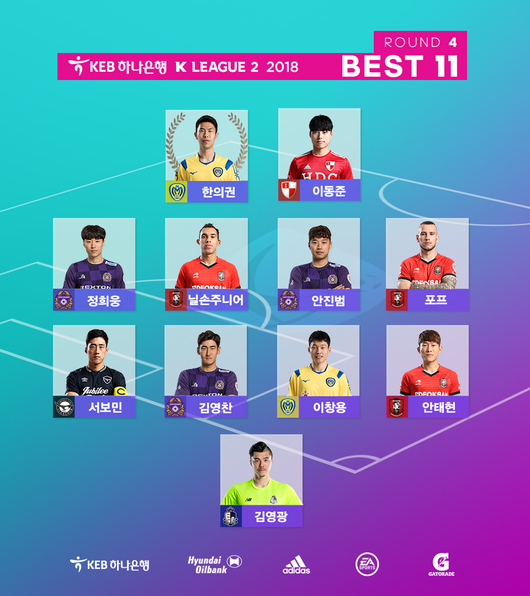상대 수비를 얼어붙게 만든 중거리 골을 선보인 아산의 공격수 한의권이 KEB하나은행 K리그2(챌린지) 2018 4라운드 MVP로 선정됐다.