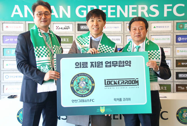 안산 그리너스 FC가 지난 11일 안산 와~스타디움 미디어룸에서 스포츠 과학 및 컨디셔닝 센터 ‘스포츠 락커룸’과 의료지원 업무협약을 체결했다고 28일 밝혔다.