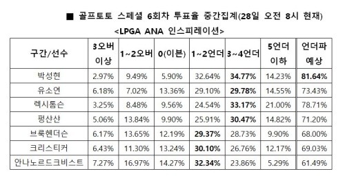 박성현 언더파 가능성 가장 높게 꼽아…29일(목) 저녁 9시 50분 마감