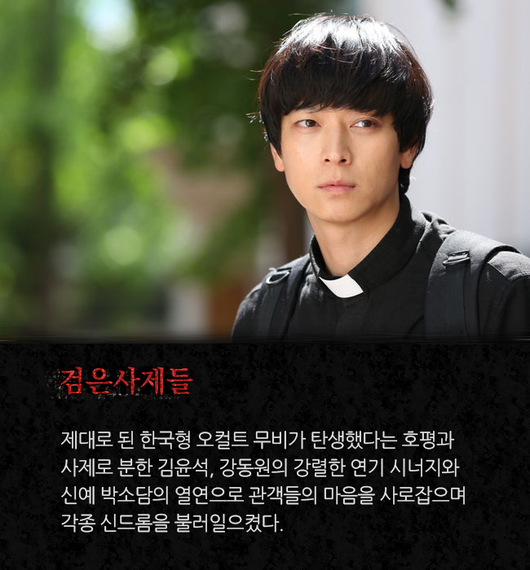 영화 ‘검은 사제들’(감독 장재현)은 위험에 직면한 소녀를 구하기 위해 미스터리한 사건에 맞서는 두 사제의 이야기를 그린 영화. 제대로 된 한국형 오컬트 무비가 탄생했다는 호평과 사제로 분한 김윤석, 강동원의 강렬한 연기 시너지와 신예 박소담의 열연으로 관객들의 마음을 사로잡으며 각종 신드롬을 불러일으켰다.