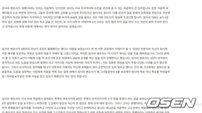 이에 임 대표는 공동 변호인단 대표 이명숙 변호사에게 사건과 관련된 정황이 담긴 녹취록을 보냈고, 이를 받은 변호인단은 27일 “녹취록을 확인 중”이라는 입장을 밝혔다. 그러고 나서 어제(28일)는 “녹취록과 관련된 입장을 밝히지 않을 것”이라고 OSEN에 알려왔다.