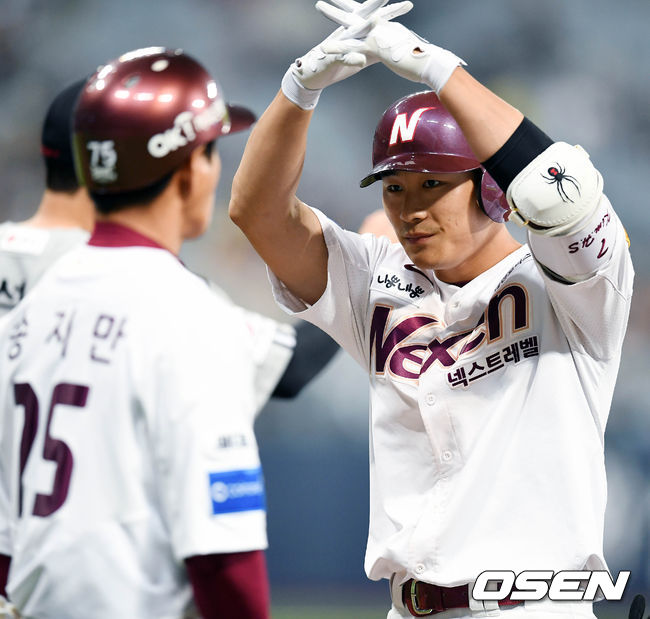 김민성은 3회 다시 홈런포를 터뜨렸다. 박병호가 볼넷, 김하성이 안타로 출루했고 폭투로 2,3루가 됐다. 김태완의 삼진 후 김민성은 신정락의 직구를 끌어당겨 이번에는 좌중간 펜스를 넘겨버렸다. 연타석 스리런 홈런.