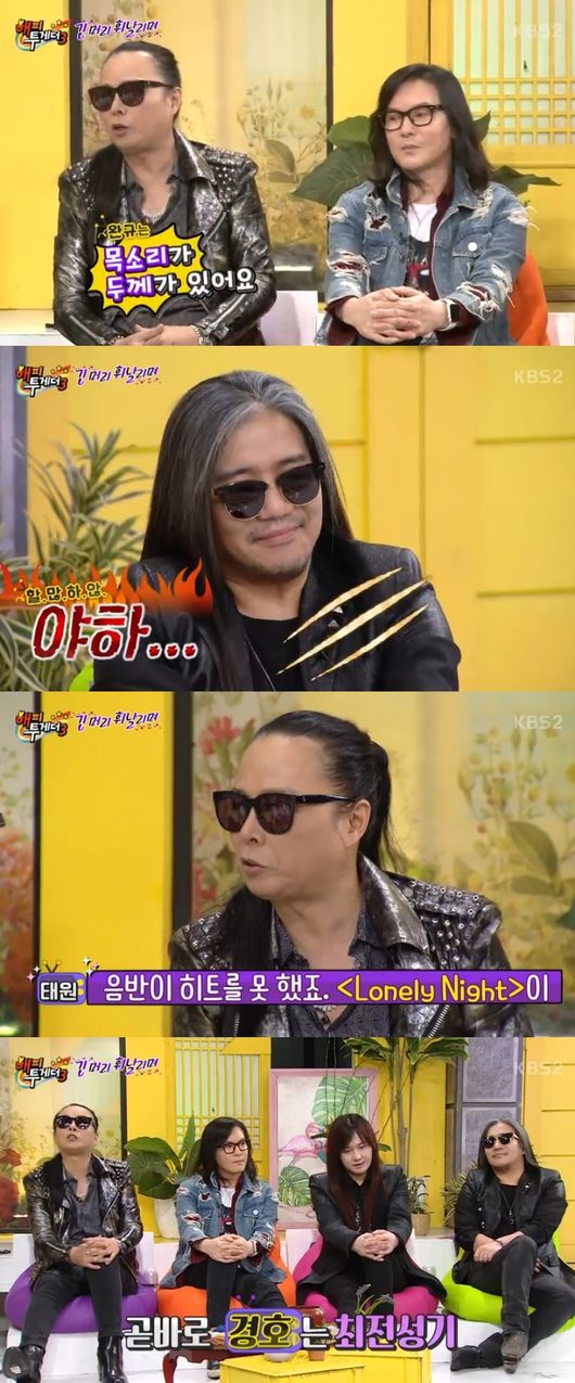 29일 방송된 KBS '해피투게더3'에 출연한 김태원은 "보컬을 뽑을 때 김경호와 박완규 소문을 들었다"고 말했다.