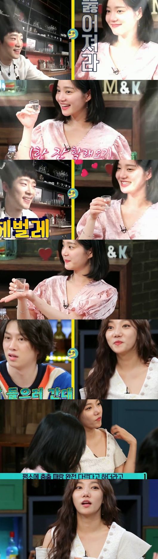 MC들이 데프콘과 장도연이 함께 출연한 예능 '1박2일' 촬영을 언급하며 두 사람을 몰아갔다. 데프콘은 "도연씨 예뻤어요. 도연씨는 정말 매력많은 사람이에요. 우리 한강갈래요?"라고 말했다. 이에 장도연의 귀가 빨개져 웃음을 자아냈다.
