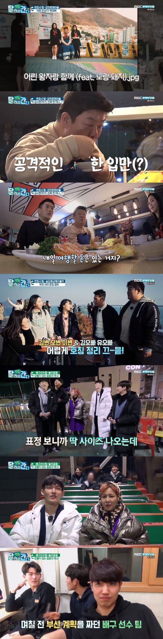 지난 29일 오후 방송된 MBC에브리원 '달라서 간다'에서는 김대희와 유민상이 변호사 팀으로, 솔비와 유승우가 배구선수 팀으로 나뉘어 부산으로 여행을 떠났다.