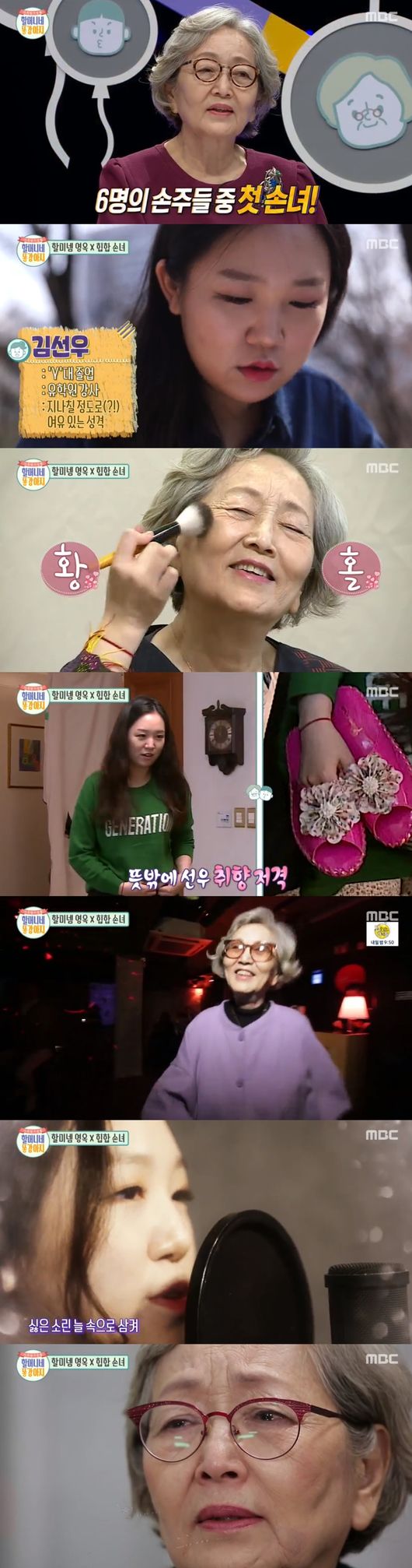 김영옥과 힙합을 좋아하는 손녀 김선우의 이야기가 시작됐다. 김선우는 "할머니는 하고 싶은 일을 어릴때부터 쭉 하셔서 능력도 인정받고 경제활동도 하시면서 자기 하고 싶은 것을 즐기면서 할 수 있는게 그런게 부럽다"고 말했다.