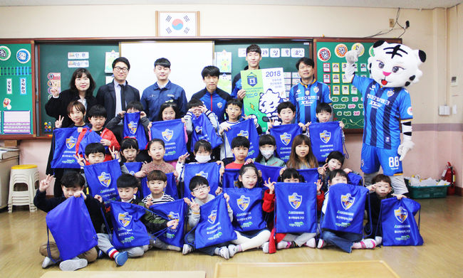 어린이들의 ‘안전한 등굣길 지킴이’로도 활약했다. 아침 등굣길 시간에 맞춰 총 18개 초등학교를 찾아가 교통안전캠페인을 전개했다. 이 중 화암초, 문현초, 상진초에는 선수들이 직접 1학년 교실을 방문해 현대미포조선, 초록우산어린이재단 울산지역본부가 함께 준비한 학용품을 입학선물로 선물했다.
