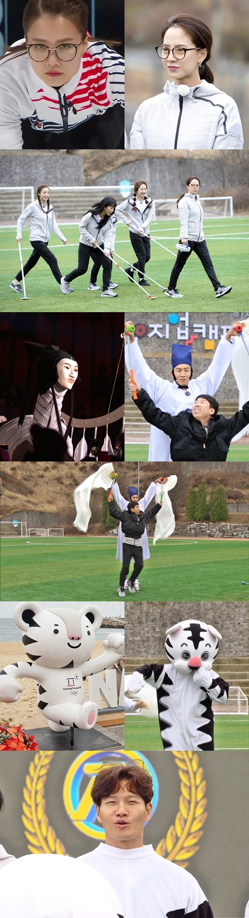 이어 ‘런닝맨 호랑이’ 김종국은 올림픽 마스코트 ‘수호랑’을 연상시키는 비주얼로 인면조 이광수와는 상반된 귀여운 매력을 발산했다.