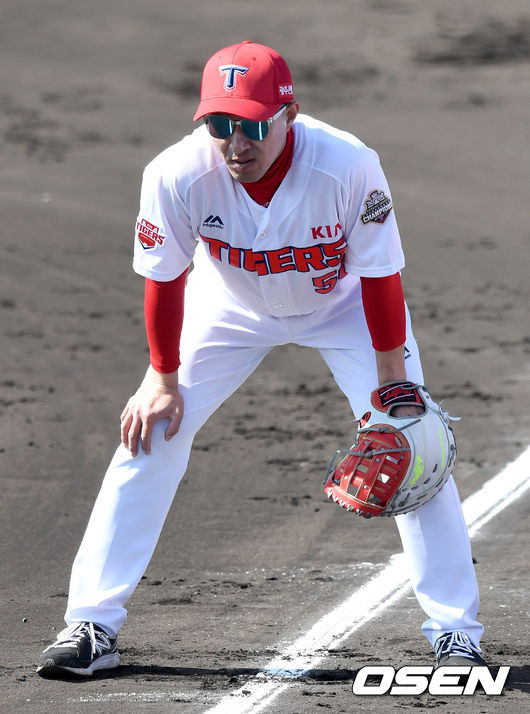 김기태 KIA 감독은 경기 전 취재진과의 미팅에서 선발 1루수를 묻는 질문에 "김주찬이 나갑니다"라고 말했다. '그럼 정성훈이 3루수로 나갑니까'라는 질문에 깜짝 놀라며 "어떻게 알았느냐. 오늘 정성훈이 3루수로 나간다"라고 대답했다.