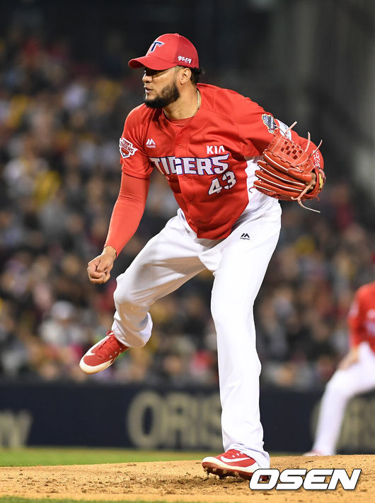 KIA 투수 헥터가 또 6회 갑자기 흔들렸다. 아슬아슬한 피칭이었으나 승리 요건은 갖췄다. 그러나 1점차 리드에서 내려갔다.