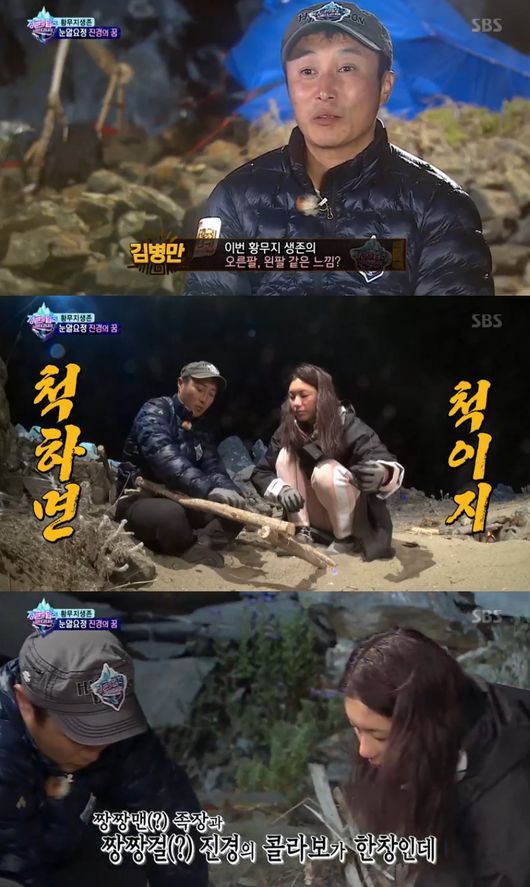 족장 김병만이 또 한번 김진경의 어시스트에 만족감을 드러냈다.