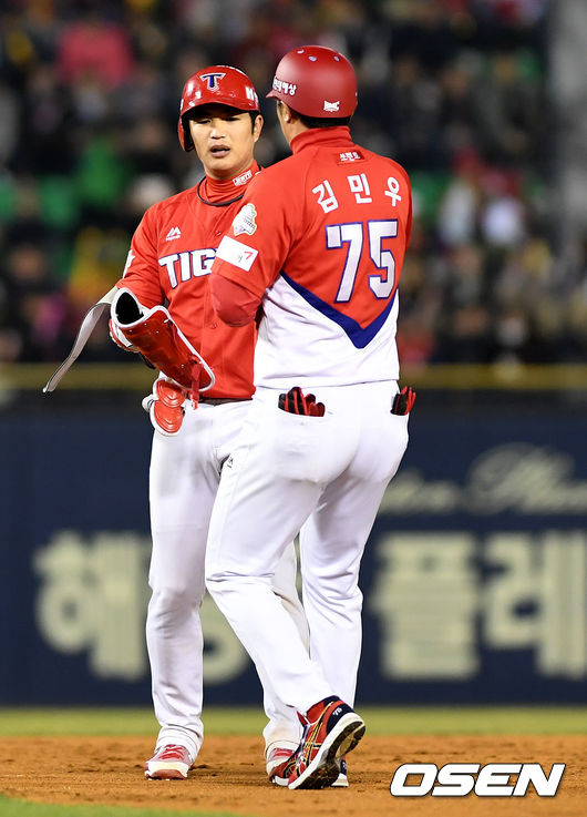 김민식이 8번타순에서 순도높은 공격을 펼치면서 상위 타선에 기회를 열어주고 있다. 상대적으로 9번 김선빈이 주춤하고 있지만 김민식이 공포의 8번으로 하위타선을 이끌며 공격에 힘을 불어넣고 있다. 당연히 얼굴에 자신감이 넘치고 포수로서 임무도 충실하다.