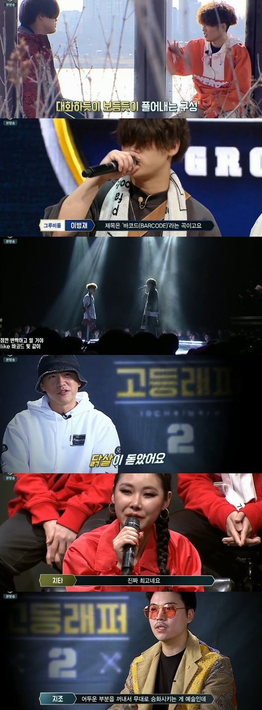 실력이 주는 즐거움은 엄청났다. '고등래퍼2'에서 또 하나의 레전드 무대가 탄생했다. 그 주인공들은 김하온과 이병재. 여기에 프로듀서 그루비룸도 빼놓을 수 없다.