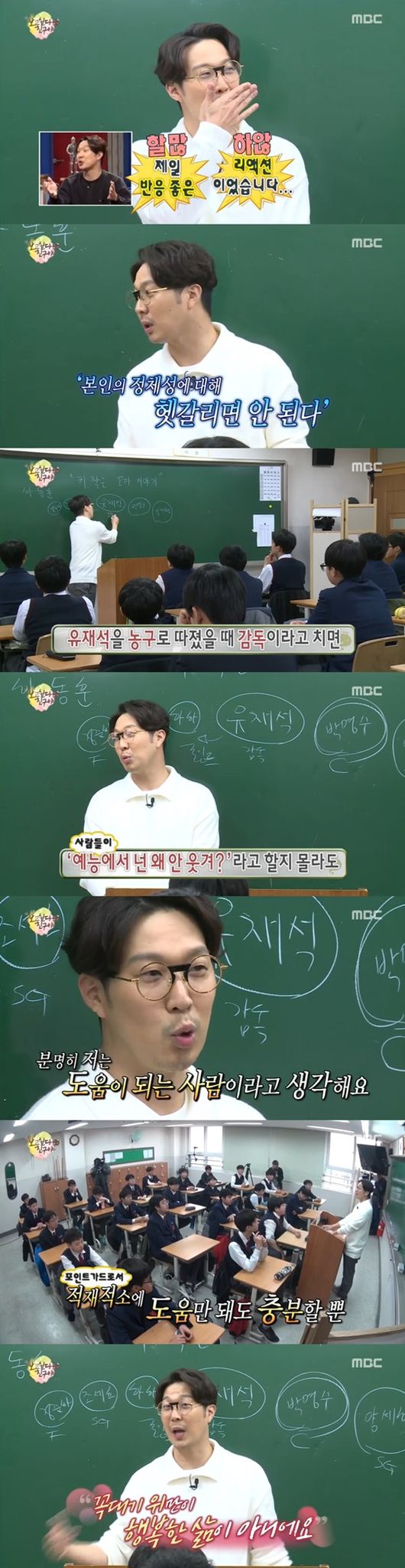 하하는 교실에 들어가기 전 "나는 주로 들어주는 역할을 해서 내 얘기 해본 적이 많지 않다"고 고백했고, 양세형은 이에 "들어주는 리액션으로는 하하 형이 우리나라 최고일 것"이라며 이에 대해 공감했다.