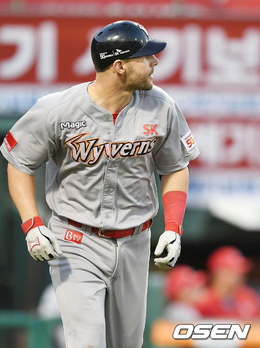 SK는 5회초에도 홈런으로 달아났다. 이재원과 김성현의 연속 볼넷, 정진기의 우전 안타로 만든 무사 만루찬스. 나주환의 투수 앞 땅볼이 1-2-3 병살로 연결됐지만 최정의 볼넷으로 2사 만루 찬스가 이어졌다. 여기서 로맥이 휠러의 2구째 몸쪽 높게 들어온 140km 직구를 놓치지 않고 잡아당겼다.
