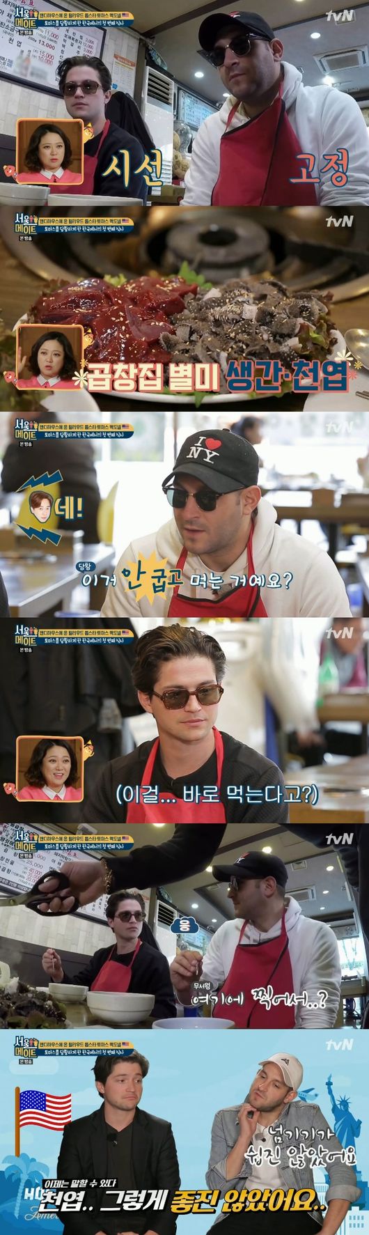 31일 오후 방송된 올리브 ‘서울메이트’에서는 앤디가 자주가는 곱창집으로 점심을 먹으러 간 게스트 토마스 맥도넬, 알렉스 프랭클의 모습이 그려졌다.
