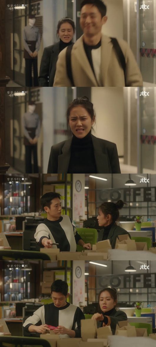 31일 오후 방송된 종합편성채널 JTBC 금토드라마 '밥 잘 사주는 예쁜 누나'(극본 김은, 연출 안팍석) 2회에서는 서준희(정해인 분)가 야근하는 윤진아(손예진 분)를 돕는 모습이 그려졌다.