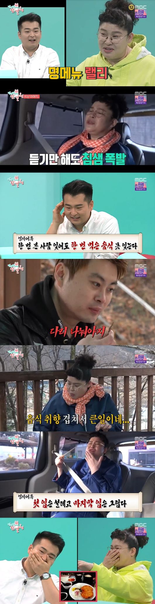 먼저 듣기만해도 침샘을 폭발하는 맛 평가로 유명한 김영자가, 이번엔 안성휴게소에서 유명한 '소떡소떡' 소세지 떡꼬치구이를 언급, 수제 소시지라 맛이 더 풍부하다 전했다. 영자는 "소시지와 떡을 같이 씹어야한다"며 먹는 방법까지 쉬지않고 설명했다.