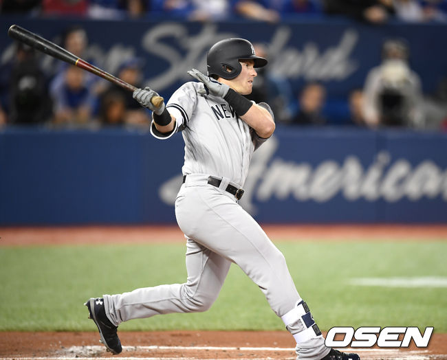 애런 저지가 중견수로 이동하며 좌익수 매키니는 지난 시즌 신인왕과 외야에서 호흡을 맞췄다. 하지만 불행하게도 매키니는 1일 치른 3차전서 1회 조쉬 도널드슨의 타구를 쫓다 벽과 충돌해 왼쪽 어깨에 부상을 입었다. 매키니는 브렛 가드너와 교체됐다. 마이너리그서 올라와 간절하게 기회를 얻은 그로서는 아쉬운 부상이었다. 매키니는 경기 중 병원으로 이송됐다. / jasonseo34@osen.co.kr