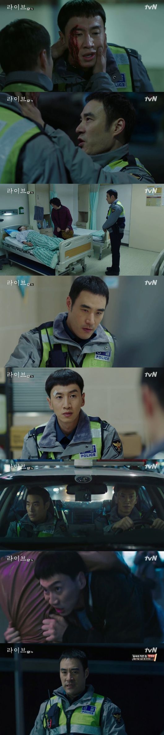 지난 31일 방송된 tvN ‘라이브’에서는 피 혐의자를 쫓아가다가 칼에 찔린 염상수(이광수 분)의 모습이 그려졌다.