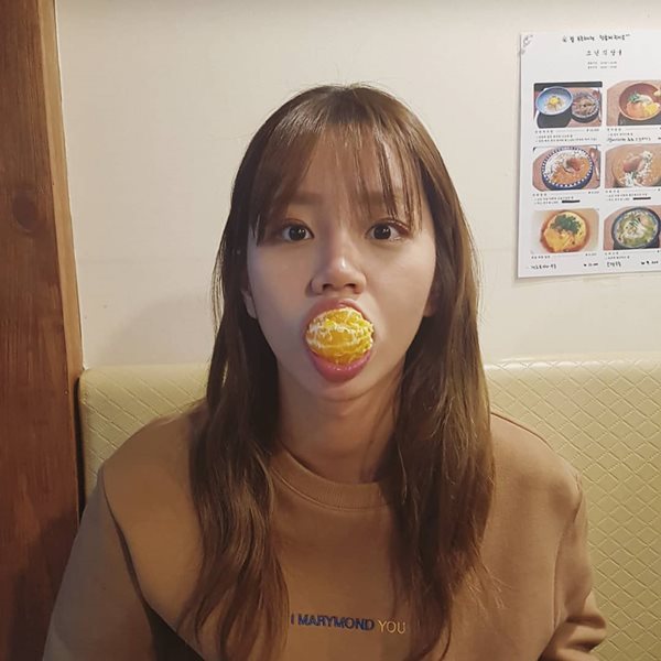 공개된 사진 속에는 귤을 입에 물고 있는 혜리의 모습이 담겨 있다. 그의 깜찍한 표정과 재치 있는 너스레가 보는 이들의 웃음을 유발한다.