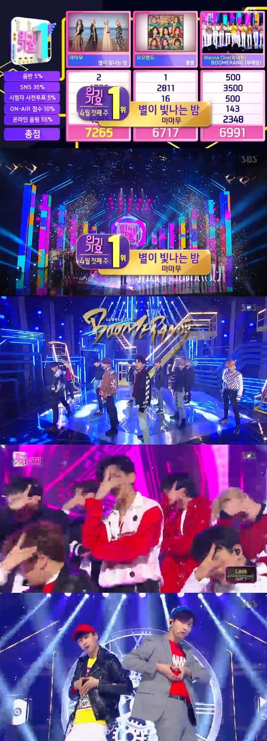 이날 마마무는 모모랜드, 워너원과의 팽팽한 접전 끝에 1위를 차지했다. 아쉽게도 마마무의 무대는 없었지만 워너원은 '약속해요(I.P.U.)'와 '부메랑'으로 압도적 컴백 무대를 꾸며 팬들의 뜨거운 함성을 이끌어냈다.