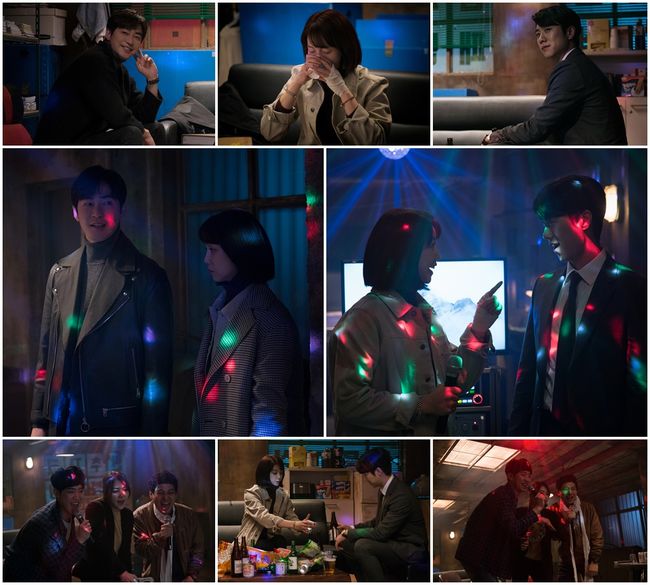 이런 가운데 오늘 펼쳐질 10회 방송에서는 ‘천국의 문’ 비밀 수사팀인 ‘수사 어벤저스’가 모두 모여 역대급 회식을 펼치는 장면이 담길 예정이다. 천재인의 아지트이자 ‘수사 어벤저스’ 회의 장소가 현란한 미러볼 조명의 노래방으로 변한 가운데, 형사 최성기(김형범)의 주도 하에 계도훈(연제형), 수사관 이채영(유정래)이 함께 모여 거친 춤사위로 열창을 이어나가는 모습이 그려지는 것.