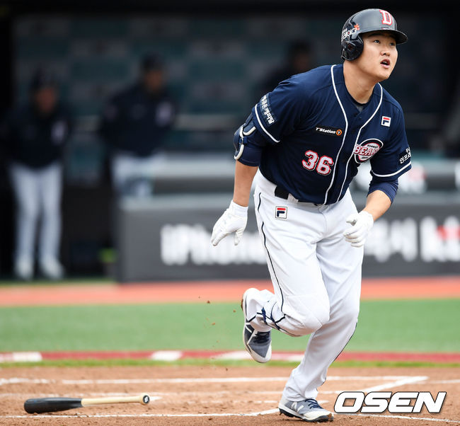 KT 원정 2경기에 연속 4타수 무안타에 그쳤던 오재일은 이날 첫 타석부터 화끈한 홈런을 날렸다. 0-0으로 맞선 2회초 선두타자 양의지가 안타로 출루하자 KT 선발 고영표의 체인지업을 받아쳐 우측 담장을 넘겼다. 지난 24일 개막전 이후 나온 시즌 2호 홈런.