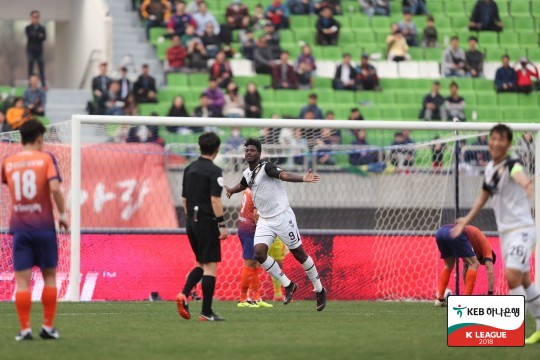 전반 39분 말컹은 네게바가 측면서 올려준 크로스를 매우 높은 점프 이후 가볍게 머리로 방향을 바꿔 선제골을 터트렸다. 초고공 헤더 슈팅에 강원의 골키퍼 김호준은 움직이지도 못했다.