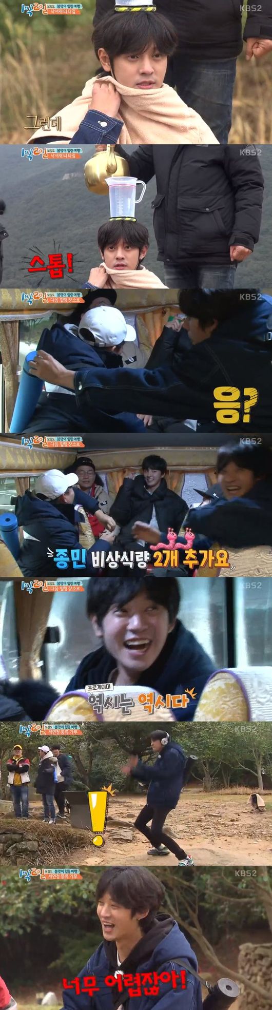 지난 1일 방송된 KBS2 예능 '해피선데이-1박 2일 시즌3(이하 1박 2일)' 691회에서는 최남단 땅끝마을 보길도로 향하는 김준호, 차태현, 데프콘, 김종민, 정준영, 윤시윤의 모습이 전파를 탔다.