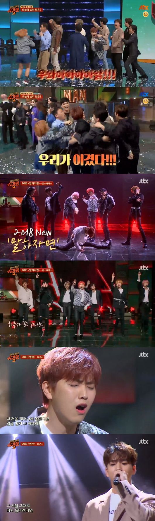 1일 오후 방송된 JTBC '투유프로젝트-슈가맨2'(이하 슈가맨2)에서 쇼맨 B1A4가 역주행송 대결에서 승리했다.