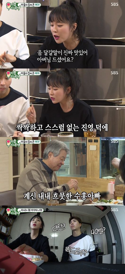 지난 1일 '미우새'에서는 박수홍에게 게임을 알려주기 위해서 홍진영이 집을 찾았다. 박수홍의 아버지는 홍진영을 보고 '둘이 한 번 잘해봐' 등의 애정을 드러냈다.