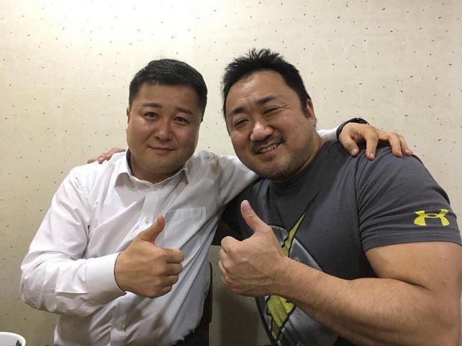 배우 마동석이 영화 '범죄도시'(감독 강윤성)의 실제 인물인 윤석호 형사와의 인증샷을 공개했다.