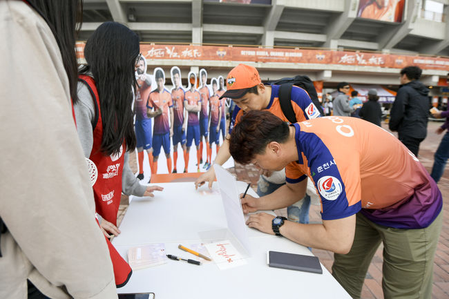 경기장을 찾은 팬들은 장외행사 부스에서 엽서를 받아 자신이 좋아하는 선수에게 응원 메시지를 작성하고 구단 측에 전달한다.