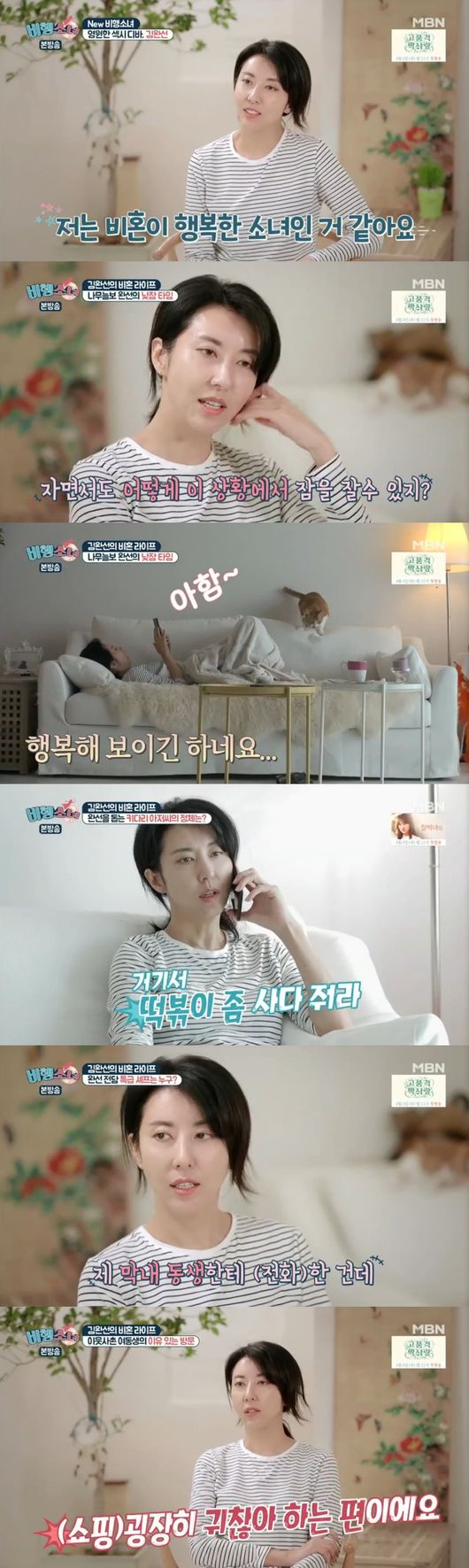 이날 새 멤버로 김완선이 등장 화려한 비혼생활을 택한 이유에 대해 "선택 아니지만 비혼을 사는게 저한테 굉장히 맞다"고 전했다. 이어 완선은 "현재 굉장히 행복, 만족하며 살고 있다, 비혼은 행복한 소녀"며 그 누구보다도 행복한 비혼생활을 즐기고 있는 모습을 보였다.